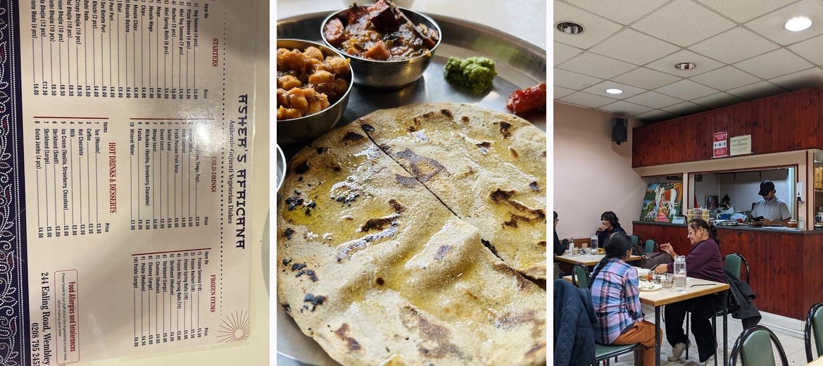 Indulge in authentic Gujarati thali and Indian vegetarian cuisine at Asher's Africana Pure Vegetarian Restaurant in Wembley. Enjoy a warm, welcoming atmosphere perfect for families, solo dining, or groups. Offering delicious options for breakfast, lunch, and dinner, with delivery and takeaway available. Experience soul-satisfying meals crafted with love, complemented by great tea and a cozy vibe. Visit us today!